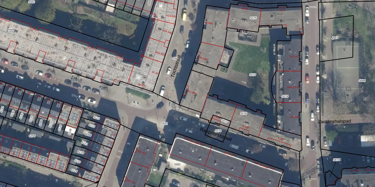 Tochtstraat 54-A is gelegen op kadastraal perceel RTD07W5576. Deze kadastrale aanduiding is uniek en wordt gebruikt door het Kadaster om eigendomsrechten en andere zakelijke rechten vast te leggen. Het perceel maakt onderdeel uit van de kadastrale gemeente Rotterdam.