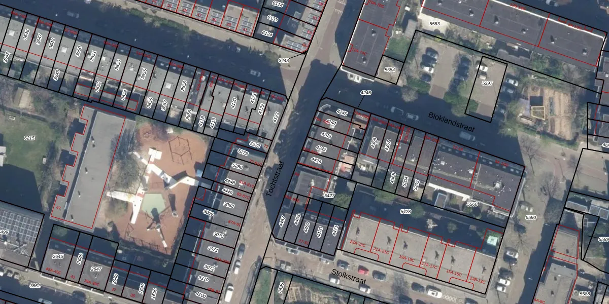 Het perceel waarop Tochtstraat 82-D staat heeft een oppervlakte van 85 m². Dit is een klein perceel. De perceeloppervlakte wordt geregistreerd door het Kadaster. Gedetailleerde informatie over de maten van dit perceel kunt u vinden in het rapport Kadastrale kaart met maatvoering van Tochtstraat 82-D.