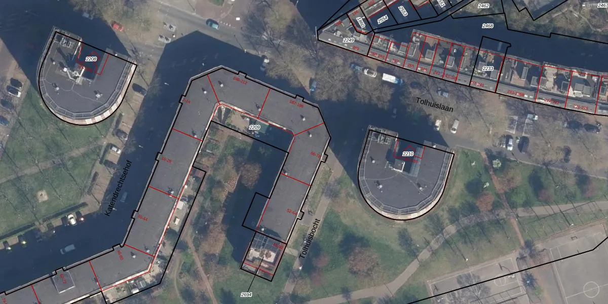 Het adres ligt op het perceel RTD05-P-2209, dat zich in de kadastrale gemeente Rotterdam bevindt. Het perceel is met 3084 m² relatief groot. Het gemiddelde ligt in de kadastrale gemeente Rotterdam op 1401,79 m². Het grootste perceel in de kadastrale gemeente is 36,8 ha. Het kleinste perceel heeft een oppervlakte van 0 m². Er zijn 82 adressen aanwezig op het perceel. De laatste wijziging in het de Basisregistratie Kadaster (BRK) was op 09-08-2022.