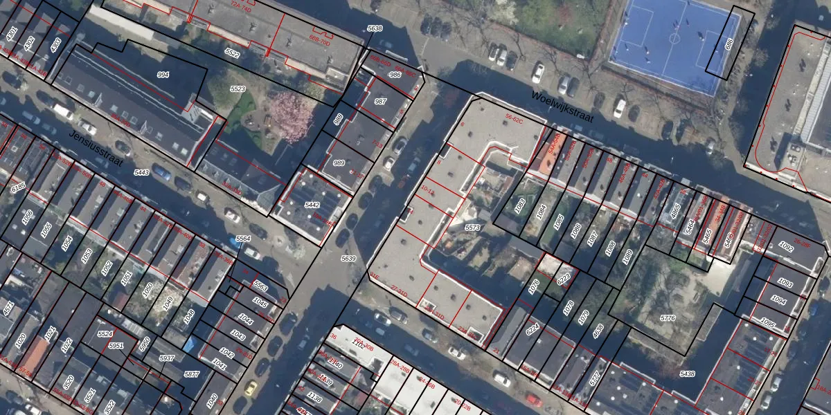 Het adres ligt op het perceel RTD07-W-5573, dat zich in de kadastrale gemeente Rotterdam bevindt. Het perceel is met 1428 m² relatief groot. Het gemiddelde ligt in de kadastrale gemeente Rotterdam op 506,86 m². Het grootste perceel in de kadastrale gemeente is 10,8 ha. Het kleinste perceel heeft een oppervlakte van 0 m². Op het perceel liggen in totaal 24 adressen. De laatste wijziging in het de Basisregistratie Kadaster (BRK) was op 08-01-2003.