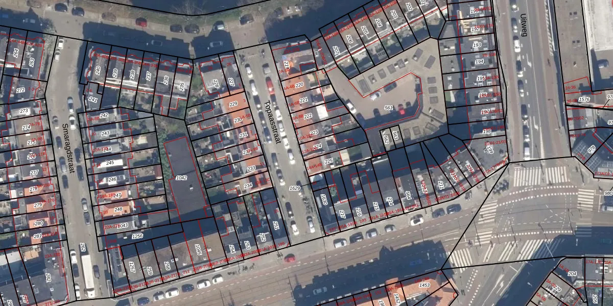 Topaasstraat 12-A is gelegen op kadastraal perceel SBK01D224. Deze kadastrale aanduiding is uniek en wordt gebruikt door het Kadaster om eigendomsrechten en andere zakelijke rechten vast te leggen. Het perceel maakt onderdeel uit van de kadastrale gemeente Schiebroek.