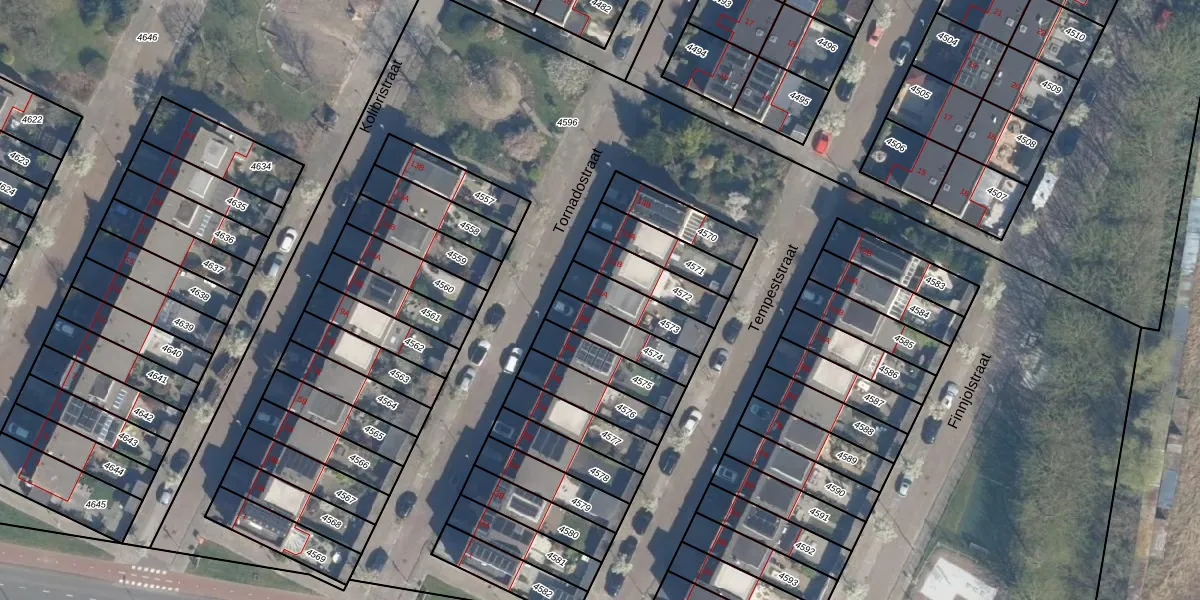 Gebruik de zoekbalk of klik op een perceel voor informatie over de adressen binnen dit perceel.