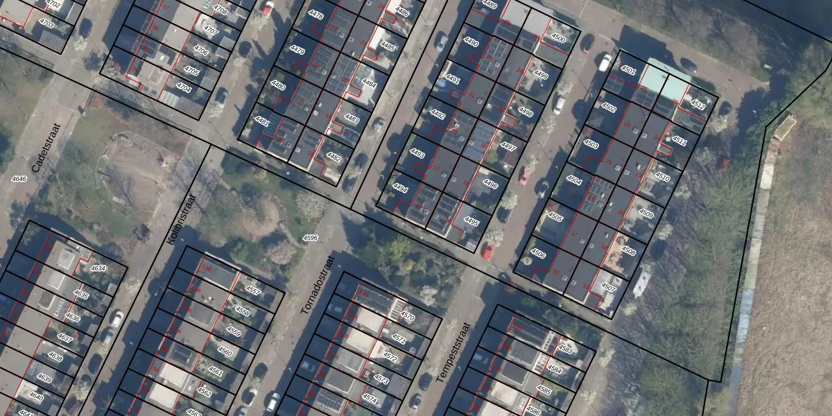 Tornadostraat 15 is gelegen op kadastraal perceel ISM01D4494. Deze kadastrale aanduiding is uniek en wordt gebruikt door het Kadaster om eigendomsrechten en andere zakelijke rechten vast te leggen. Het perceel maakt onderdeel uit van de kadastrale gemeente IJsselmonde.
