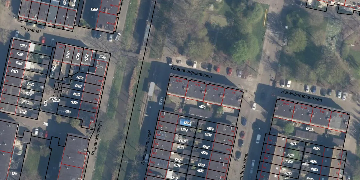 Het adres ligt op het perceel ISM01-F-3356, dat zich in de kadastrale gemeente IJsselmonde bevindt. Het perceel is kleiner dan gemiddeld in IJsselmonde. Het perceel is 851 m² groot, terwijl het gemiddelde ligt op 871,73 m². Het grootste perceel in de kadastrale gemeente is 46,2 ha. Het kleinste perceel heeft een oppervlakte van 0 m². Er zijn 12 adressen aanwezig op het perceel. De huidige grenzen van het perceel zijn digitaal in de Basisregistratie Kadaster (BRK) geregistreerd op 22-04-2004.
