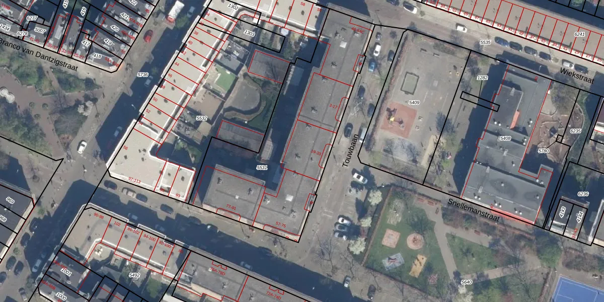 Touwbaan 19 is gelegen op kadastraal perceel RTD07W5531. Deze kadastrale aanduiding is uniek en wordt gebruikt door het Kadaster om eigendomsrechten en andere zakelijke rechten vast te leggen. Het perceel maakt onderdeel uit van de kadastrale gemeente Rotterdam.