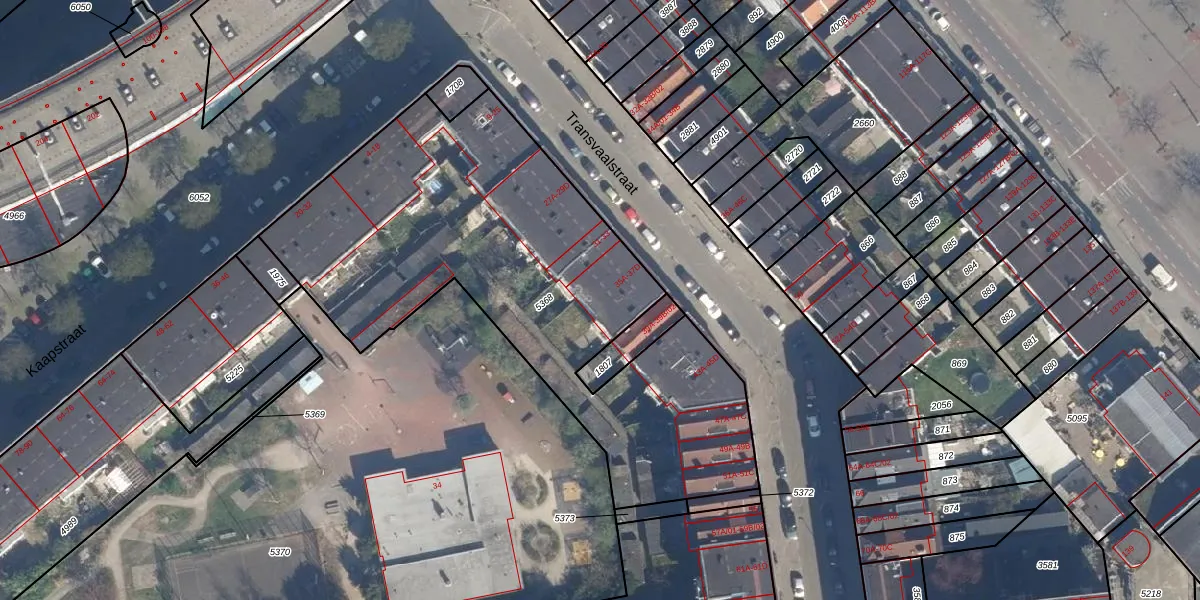 Het perceel waarop Transvaalstraat 37-C staat heeft een oppervlakte van 2415 m². Dit is een zeer groot perceel. De perceeloppervlakte wordt geregistreerd door het Kadaster. Gedetailleerde informatie over de maten van dit perceel kunt u vinden in het rapport Kadastrale kaart met maatvoering van Transvaalstraat 37-C.