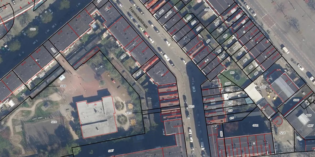 Het perceel waarop Transvaalstraat 43-A staat heeft een oppervlakte van 2415 m². Dit is een zeer groot perceel. De perceeloppervlakte wordt geregistreerd door het Kadaster. Gedetailleerde informatie over de maten van dit perceel kunt u vinden in het rapport Kadastrale kaart met maatvoering van Transvaalstraat 43-A.