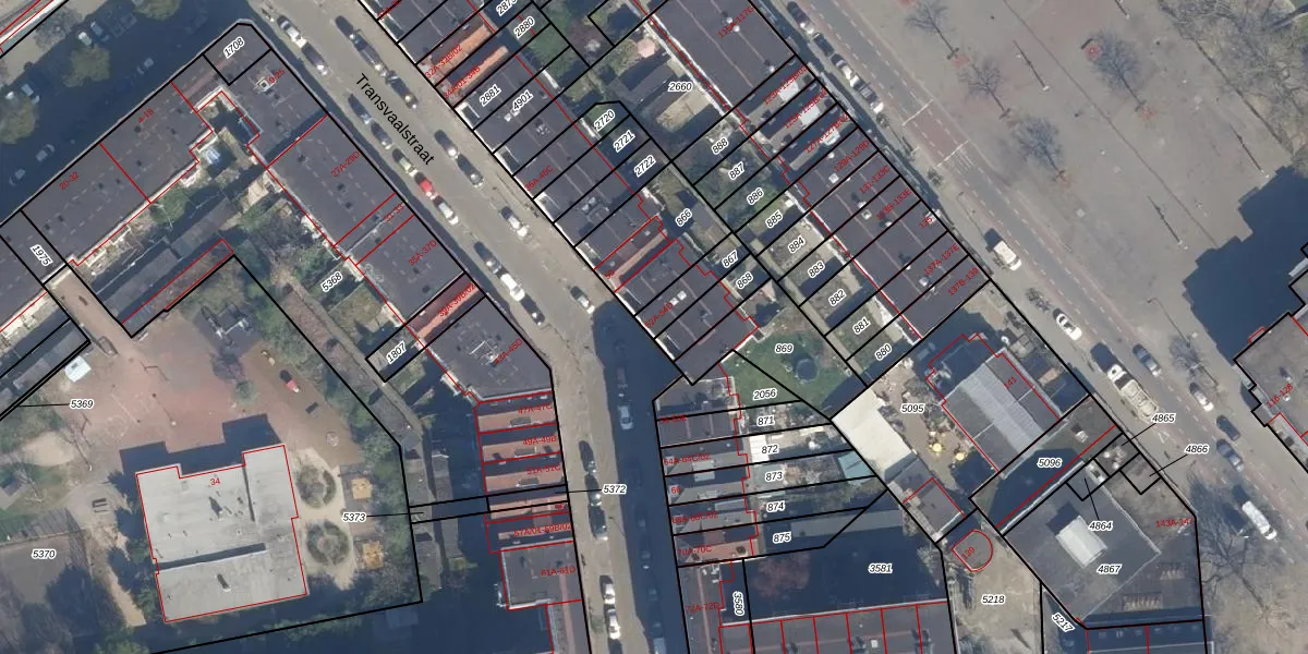 Transvaalstraat 52-A is gelegen op kadastraal perceel CLS00G867. Deze kadastrale aanduiding is uniek en wordt gebruikt door het Kadaster om eigendomsrechten en andere zakelijke rechten vast te leggen. Het perceel maakt onderdeel uit van de kadastrale gemeente Charlois.