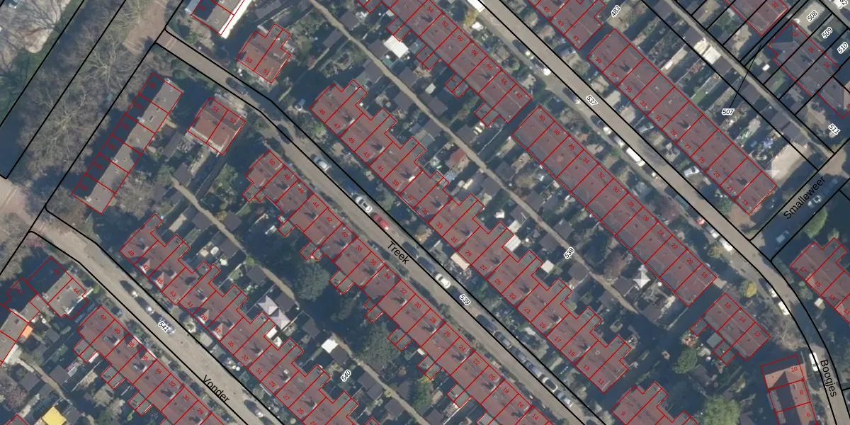 Treek 35 is gelegen op kadastraal perceel CLS00F538. Deze kadastrale aanduiding is uniek en wordt gebruikt door het Kadaster om eigendomsrechten en andere zakelijke rechten vast te leggen. Het perceel maakt onderdeel uit van de kadastrale gemeente Charlois.