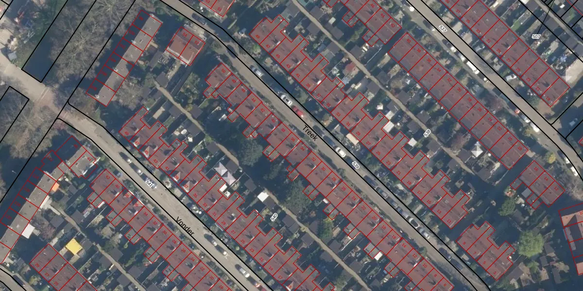 Treek 36 is gelegen op kadastraal perceel CLS00F540. Deze kadastrale aanduiding is uniek en wordt gebruikt door het Kadaster om eigendomsrechten en andere zakelijke rechten vast te leggen. Het perceel maakt onderdeel uit van de kadastrale gemeente Charlois.