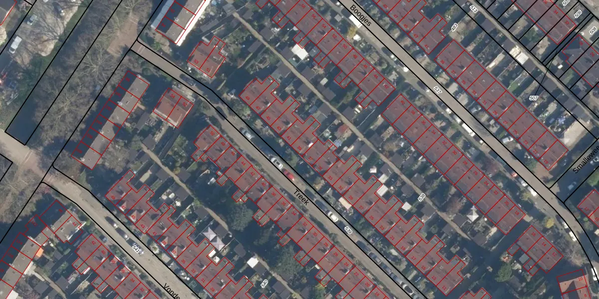Treek 39 is gelegen op kadastraal perceel CLS00F538. Deze kadastrale aanduiding is uniek en wordt gebruikt door het Kadaster om eigendomsrechten en andere zakelijke rechten vast te leggen. Het perceel maakt onderdeel uit van de kadastrale gemeente Charlois.