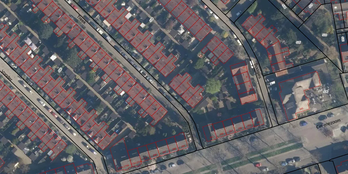 Treek 9 is gelegen op kadastraal perceel CLS00F538. Deze kadastrale aanduiding is uniek en wordt gebruikt door het Kadaster om eigendomsrechten en andere zakelijke rechten vast te leggen. Het perceel maakt onderdeel uit van de kadastrale gemeente Charlois.