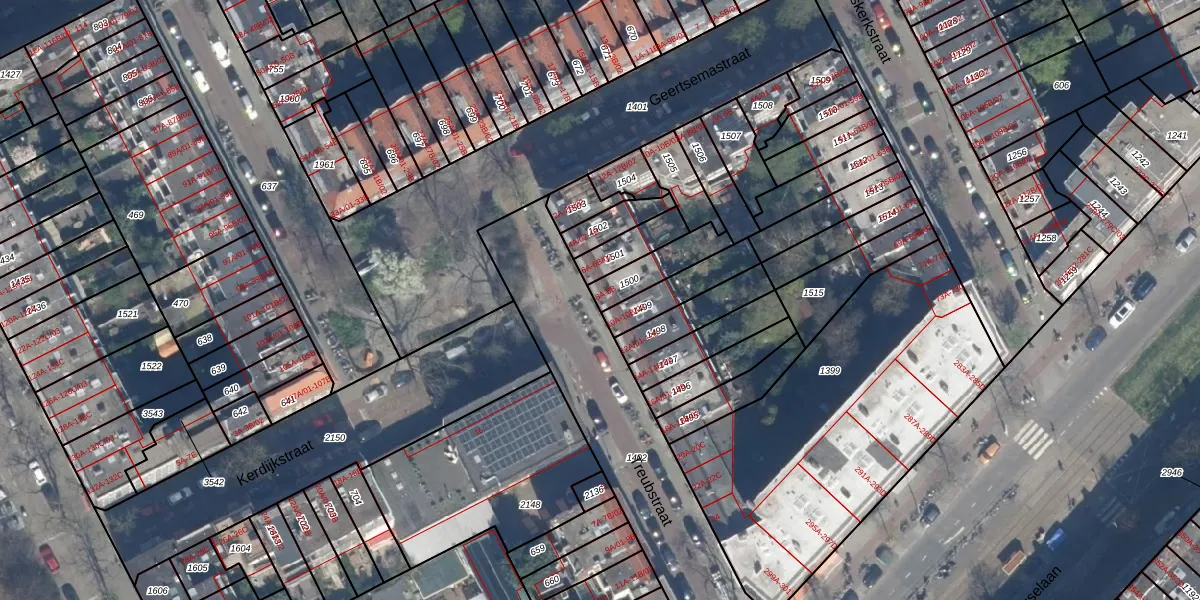 Het adres ligt op het perceel RTD10-AB-1500, dat zich in de kadastrale gemeente Rotterdam bevindt. Het perceel is 122 m² groot. Dat is kleiner dan de gemiddelde perceeloppervlakte in Rotterdam, dat op 1601,97 m² ligt. De grootste perceeloppervlakte in de kadastrale gemeente is 30,3 ha. De kleinste oppervlakte bedraagt 0 m². Er zijn 2 adressen aanwezig op het perceel. De laatste wijziging in het de Basisregistratie Kadaster (BRK) was op 21-11-2002.