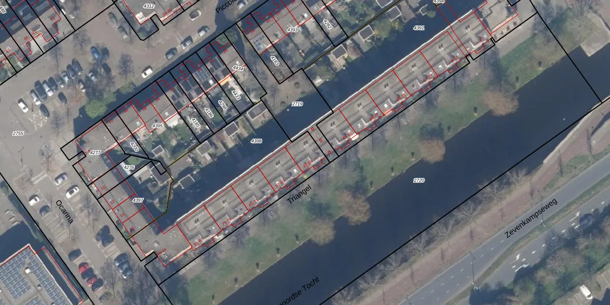 Het perceel waarop Triangel 51 staat heeft een oppervlakte van 1683 m². Dit is een zeer groot perceel. De perceeloppervlakte wordt geregistreerd door het Kadaster. Gedetailleerde informatie over de maten van dit perceel kunt u vinden in het rapport Kadastrale kaart met maatvoering van Triangel 51.