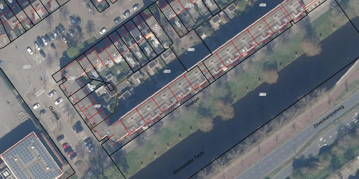 Triangel 61 is gelegen op kadastraal perceel RTD13BA4398. Deze kadastrale aanduiding is uniek en wordt gebruikt door het Kadaster om eigendomsrechten en andere zakelijke rechten vast te leggen. Het perceel maakt onderdeel uit van de kadastrale gemeente Rotterdam.