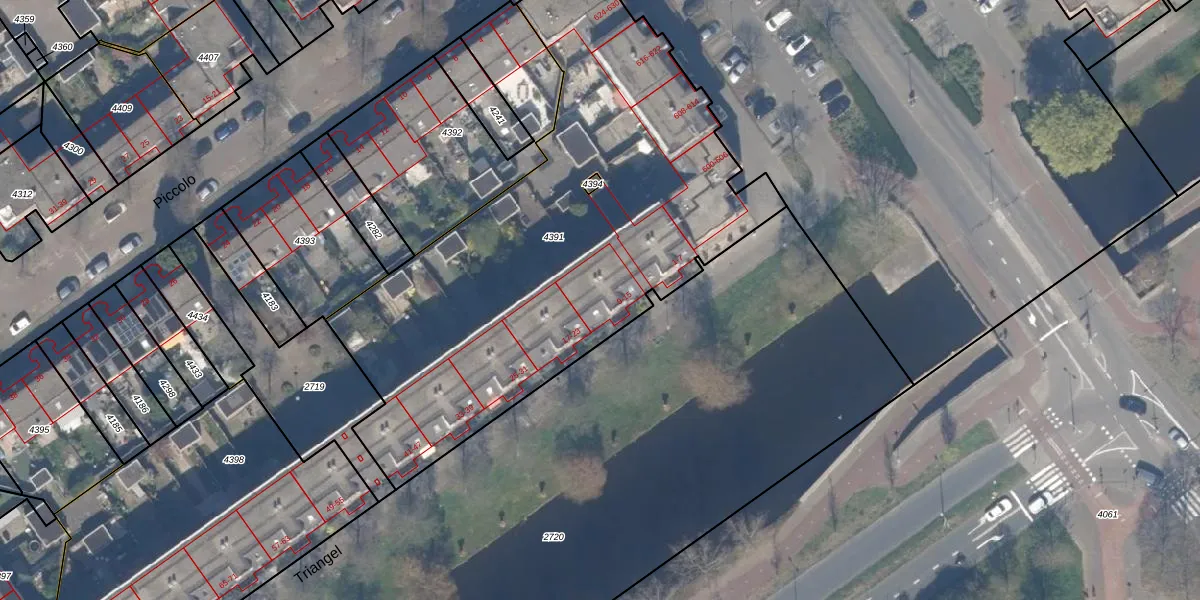 Triangel 9 is gelegen op kadastraal perceel RTD13BA4391. Deze kadastrale aanduiding is uniek en wordt gebruikt door het Kadaster om eigendomsrechten en andere zakelijke rechten vast te leggen. Het perceel maakt onderdeel uit van de kadastrale gemeente Rotterdam.