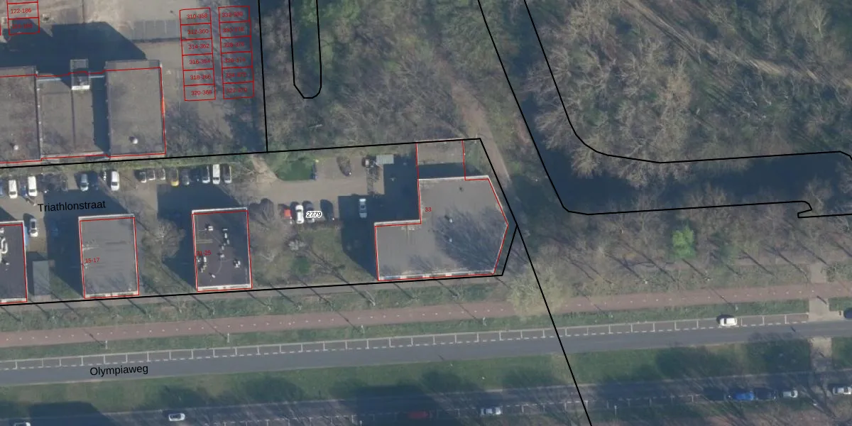 Triathlonstraat 33 is gelegen op kadastraal perceel ISM01E2779. Deze kadastrale aanduiding is uniek en wordt gebruikt door het Kadaster om eigendomsrechten en andere zakelijke rechten vast te leggen. Het perceel maakt onderdeel uit van de kadastrale gemeente IJsselmonde.