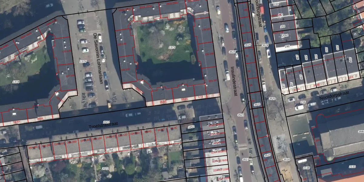 Troelstrastraat 19 is gelegen op kadastraal perceel RTD10AB1373. Deze kadastrale aanduiding is uniek en wordt gebruikt door het Kadaster om eigendomsrechten en andere zakelijke rechten vast te leggen. Het perceel maakt onderdeel uit van de kadastrale gemeente Rotterdam.