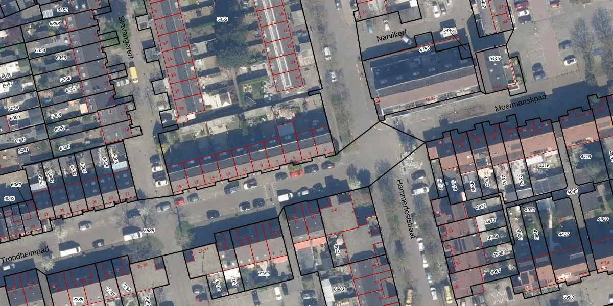 Het perceel waarop Trondheimpad 3 staat heeft een oppervlakte van 4415 m². Dit is een zeer groot perceel. De perceeloppervlakte wordt geregistreerd door het Kadaster. Gedetailleerde informatie over de maten van dit perceel kunt u vinden in het rapport Kadastrale kaart met maatvoering van Trondheimpad 3.