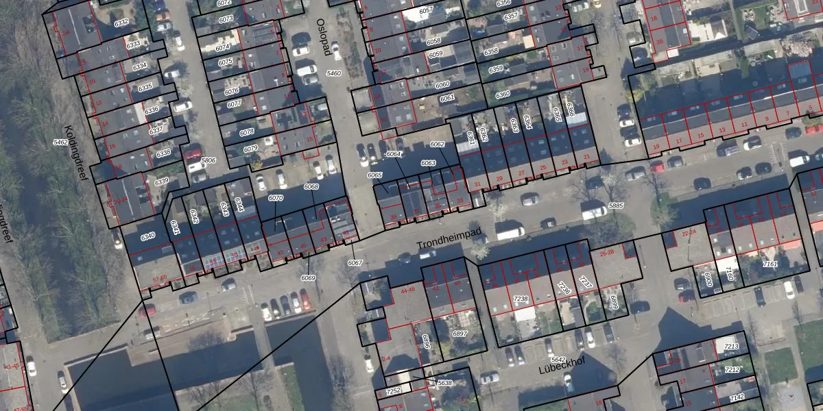 Het perceel waarop Trondheimpad 37 staat heeft een oppervlakte van 60 m². Dit is een klein perceel. De perceeloppervlakte wordt geregistreerd door het Kadaster. Gedetailleerde informatie over de maten van dit perceel kunt u vinden in het rapport Kadastrale kaart met maatvoering van Trondheimpad 37.