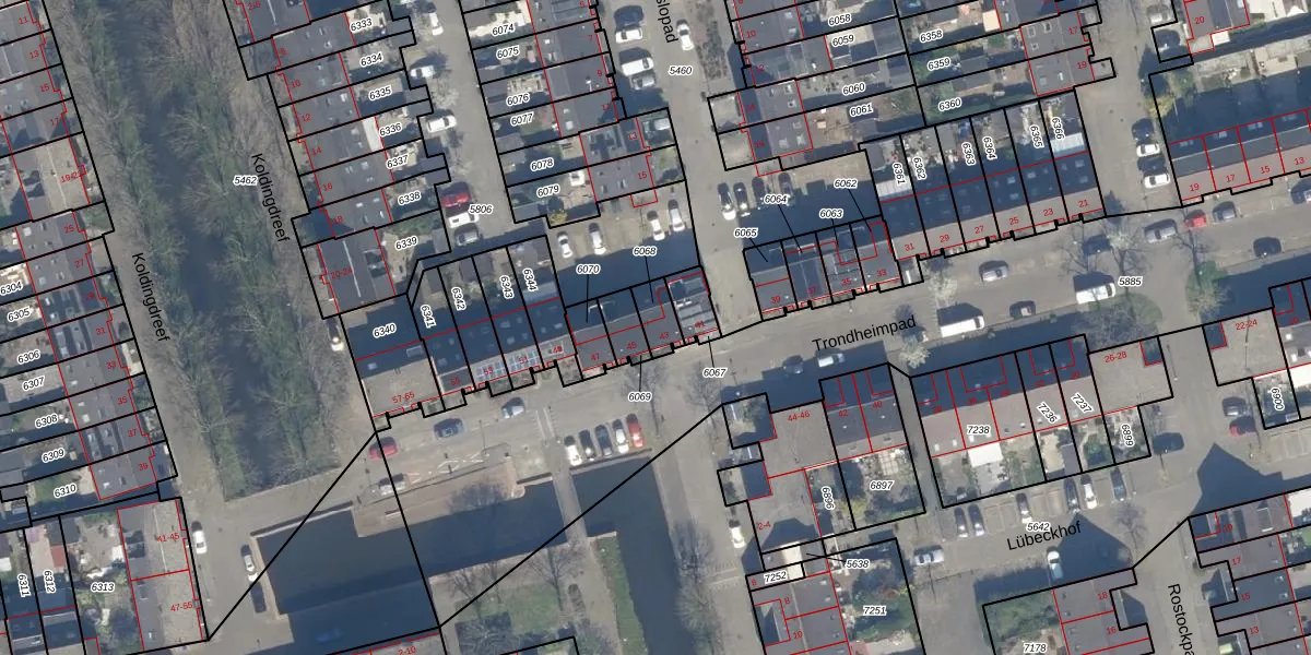Het perceel waarop Trondheimpad 43 staat heeft een oppervlakte van 60 m². Dit is een klein perceel. De perceeloppervlakte wordt geregistreerd door het Kadaster. Gedetailleerde informatie over de maten van dit perceel kunt u vinden in het rapport Kadastrale kaart met maatvoering van Trondheimpad 43.