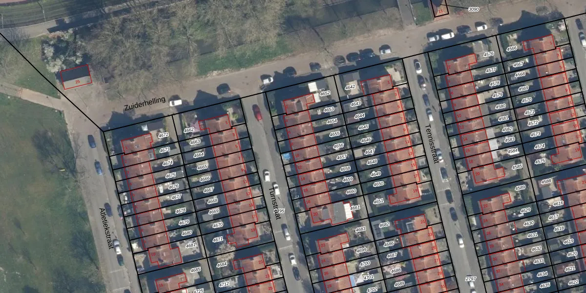 Gebruik de zoekbalk of klik op een perceel voor informatie over de adressen binnen dit perceel.