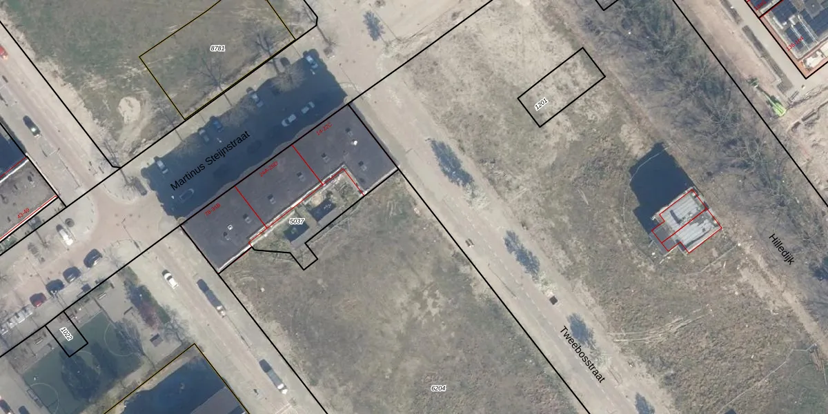 Tweebosstraat 43-B is gelegen op kadastraal perceel CLS00G6204. Deze kadastrale aanduiding is uniek en wordt gebruikt door het Kadaster om eigendomsrechten en andere zakelijke rechten vast te leggen. Het perceel maakt onderdeel uit van de kadastrale gemeente Charlois.