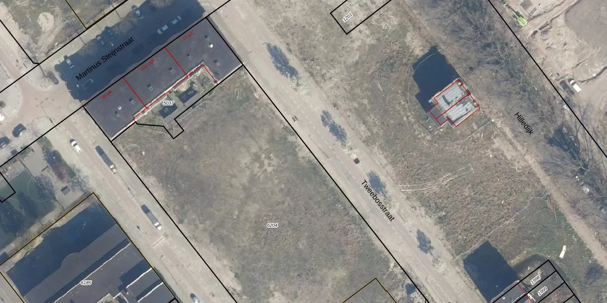 Tweebosstraat 51-A is gelegen op kadastraal perceel CLS00G6204. Deze kadastrale aanduiding is uniek en wordt gebruikt door het Kadaster om eigendomsrechten en andere zakelijke rechten vast te leggen. Het perceel maakt onderdeel uit van de kadastrale gemeente Charlois.