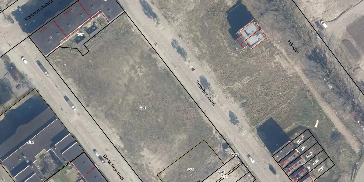 Tweebosstraat 57-B is gelegen op kadastraal perceel CLS00G6204. Deze kadastrale aanduiding is uniek en wordt gebruikt door het Kadaster om eigendomsrechten en andere zakelijke rechten vast te leggen. Het perceel maakt onderdeel uit van de kadastrale gemeente Charlois.