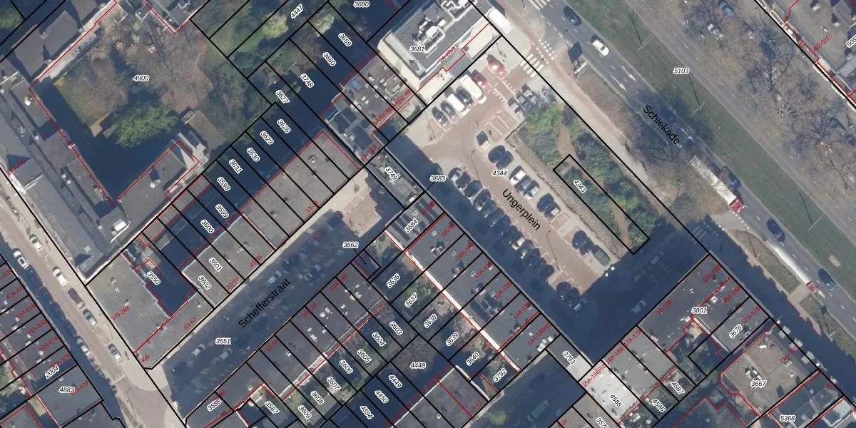 Het adres ligt op het perceel RTD06-S-3684, dat zich in de kadastrale gemeente Rotterdam bevindt. Het perceel is 136 m² groot. Dat is kleiner dan de gemiddelde perceeloppervlakte in Rotterdam, dat op 692,84 m² ligt. De grootste perceeloppervlakte in de kadastrale gemeente is 4,7 ha. De kleinste oppervlakte bedraagt 0 m². Op het perceel liggen in totaal 2 adressen. De huidige grenzen van het perceel zijn digitaal in de Basisregistratie Kadaster (BRK) geregistreerd op 24-01-2003.