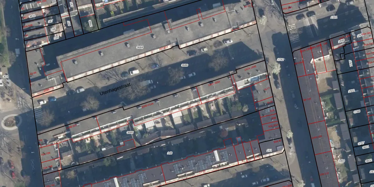 Utenhagestraat 200-B is gelegen op kadastraal perceel CLS00H3685. Deze kadastrale aanduiding is uniek en wordt gebruikt door het Kadaster om eigendomsrechten en andere zakelijke rechten vast te leggen. Het perceel maakt onderdeel uit van de kadastrale gemeente Charlois.