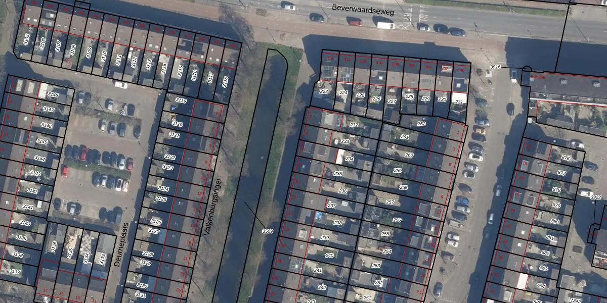 Gebruik de zoekbalk of klik op een perceel voor informatie over de adressen binnen dit perceel.
