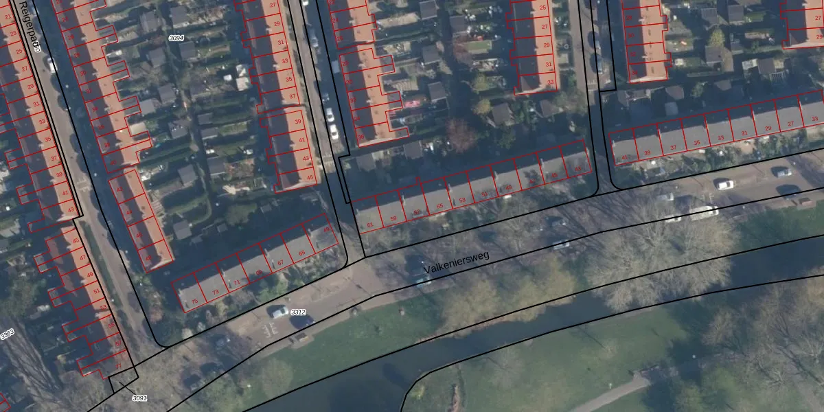Valkeniersweg 57 is gelegen op kadastraal perceel CLS00F3097. Deze kadastrale aanduiding is uniek en wordt gebruikt door het Kadaster om eigendomsrechten en andere zakelijke rechten vast te leggen. Het perceel maakt onderdeel uit van de kadastrale gemeente Charlois.