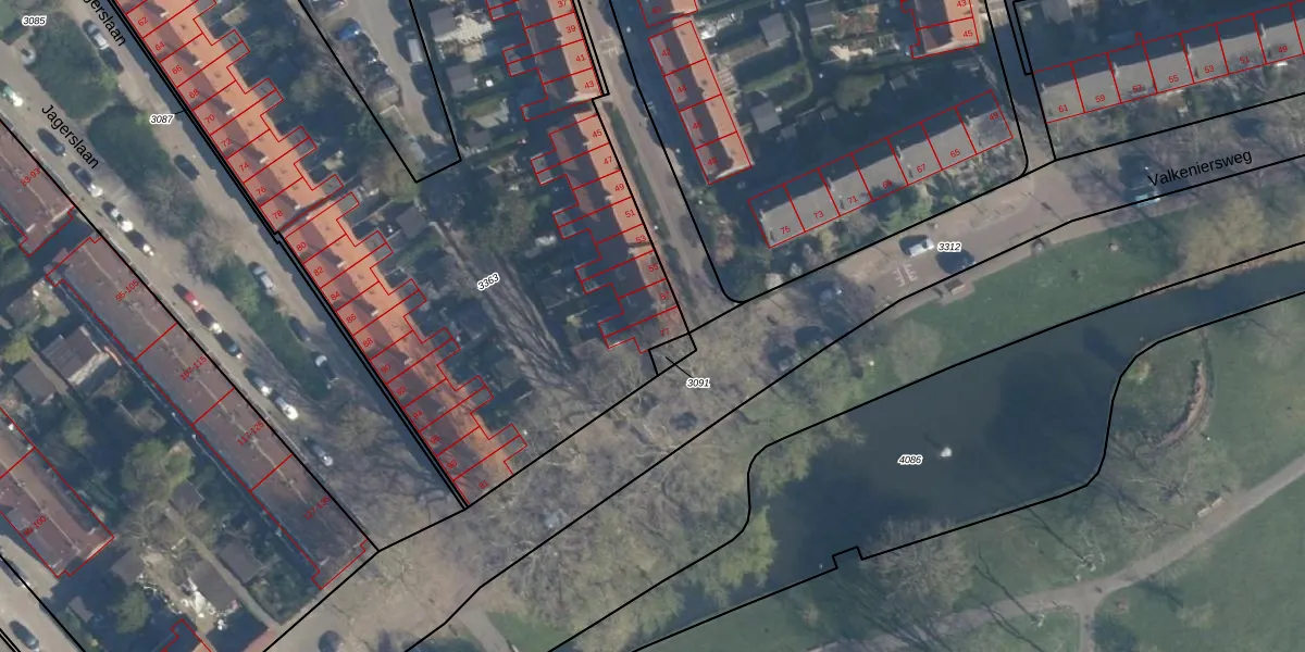 Het perceel waarop Valkeniersweg 77 staat heeft een oppervlakte van 9175 m². Dit is een zeer groot perceel. De perceeloppervlakte wordt geregistreerd door het Kadaster. Gedetailleerde informatie over de maten van dit perceel kunt u vinden in het rapport Kadastrale kaart met maatvoering van Valkeniersweg 77.