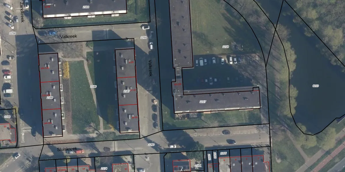 Het perceel waarop Valkreek 98 staat heeft een oppervlakte van 1174 m². Dit is een zeer groot perceel. De perceeloppervlakte wordt geregistreerd door het Kadaster. Gedetailleerde informatie over de maten van dit perceel kunt u vinden in het rapport Kadastrale kaart met maatvoering van Valkreek 98.