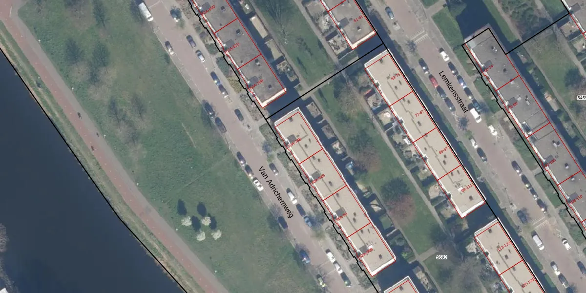 Van Adrichemweg 74-B is gelegen op kadastraal perceel OVS00C5693. Deze kadastrale aanduiding is uniek en wordt gebruikt door het Kadaster om eigendomsrechten en andere zakelijke rechten vast te leggen. Het perceel maakt onderdeel uit van de kadastrale gemeente Overschie.