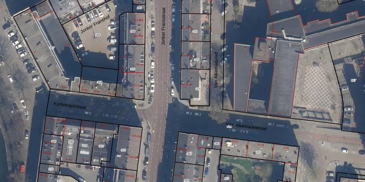 Van Alkemadehof 1 is gelegen op kadastraal perceel RTD08AD321. Deze kadastrale aanduiding is uniek en wordt gebruikt door het Kadaster om eigendomsrechten en andere zakelijke rechten vast te leggen. Het perceel maakt onderdeel uit van de kadastrale gemeente Rotterdam.