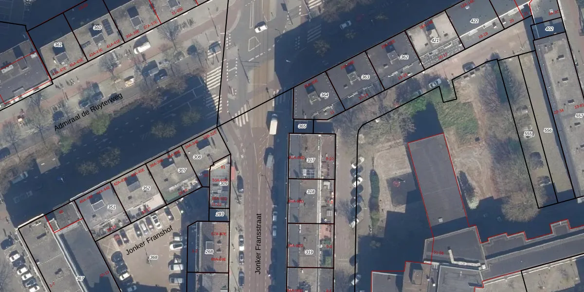 Het adres ligt op het perceel RTD08-AD-317, dat zich in de kadastrale gemeente Rotterdam bevindt. Het perceel is kleiner dan gemiddeld in Rotterdam. Het perceel is 246 m² groot, terwijl het gemiddelde ligt op 689,2 m². Het grootste perceel in de kadastrale gemeente is 4,0 ha. Het kleinste perceel heeft een oppervlakte van 0 m². Er zijn 11 adressen aanwezig op het perceel. De laatste wijziging in het de Basisregistratie Kadaster (BRK) was op 20-01-2003.