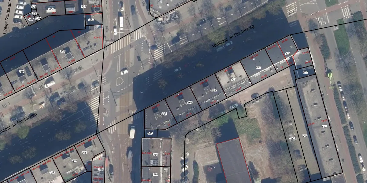 Het adres ligt op het perceel RTD08-AD-363, dat zich in de kadastrale gemeente Rotterdam bevindt. Het perceel is kleiner dan gemiddeld in Rotterdam. Het perceel is 227 m² groot, terwijl het gemiddelde ligt op 689,2 m². Het kleinste perceel in de kadastrale gemeente is 0 m² groot. De grootste perceeloppervlakte is 4,0 ha. Op het perceel zijn 14 adressen aanwezig. De laatste wijziging in het de Basisregistratie Kadaster (BRK) was op 11-11-2005.