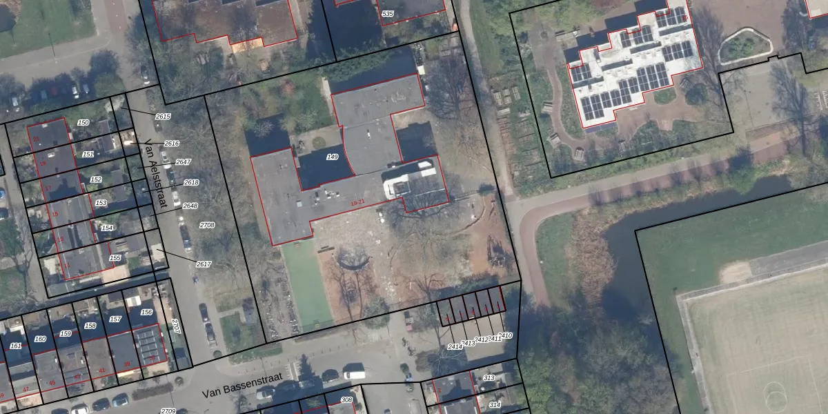 Het perceel waarop Van Bassenstraat 21 staat heeft een oppervlakte van 3968 m². Dit is een zeer groot perceel. De perceeloppervlakte wordt geregistreerd door het Kadaster. Gedetailleerde informatie over de maten van dit perceel kunt u vinden in het rapport Kadastrale kaart met maatvoering van Van Bassenstraat 21.