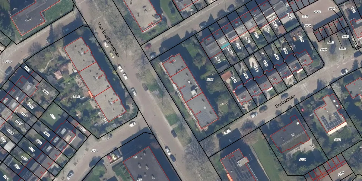 Het perceel waarop Van Beethovenlaan 32 staat heeft een oppervlakte van 1508 m². Dit is een zeer groot perceel. De perceeloppervlakte wordt geregistreerd door het Kadaster. Gedetailleerde informatie over de maten van dit perceel kunt u vinden in het rapport Kadastrale kaart met maatvoering van Van Beethovenlaan 32.