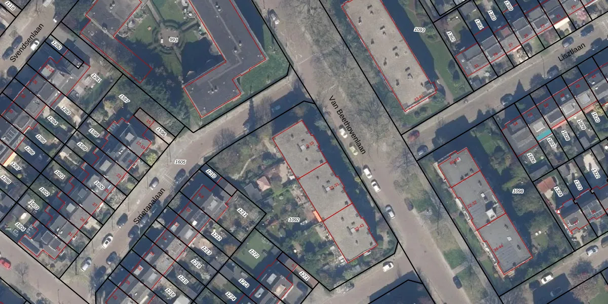 Het perceel waarop Van Beethovenlaan 9 staat heeft een oppervlakte van 1992 m². Dit is een zeer groot perceel. De perceeloppervlakte wordt geregistreerd door het Kadaster. Gedetailleerde informatie over de maten van dit perceel kunt u vinden in het rapport Kadastrale kaart met maatvoering van Van Beethovenlaan 9.