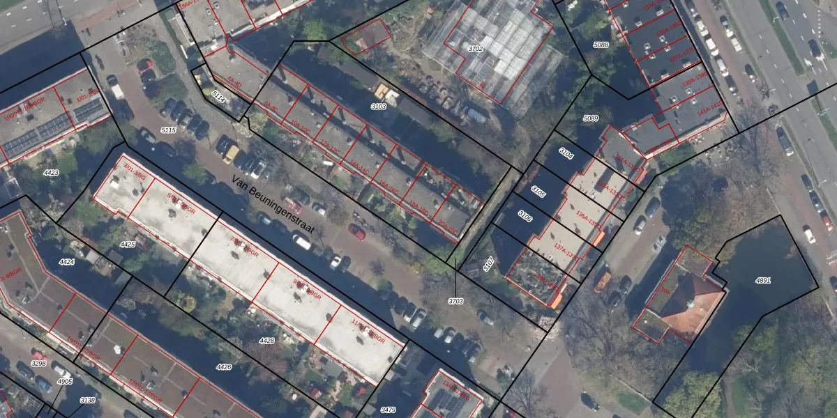 Van Beuningenstraat 18-A is gelegen op kadastraal perceel RTD10Z3103. Deze kadastrale aanduiding is uniek en wordt gebruikt door het Kadaster om eigendomsrechten en andere zakelijke rechten vast te leggen. Het perceel maakt onderdeel uit van de kadastrale gemeente Rotterdam.