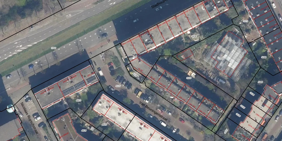 Van Beuningenstraat 4-B is gelegen op kadastraal perceel RTD10Z3436. Deze kadastrale aanduiding is uniek en wordt gebruikt door het Kadaster om eigendomsrechten en andere zakelijke rechten vast te leggen. Het perceel maakt onderdeel uit van de kadastrale gemeente Rotterdam.
