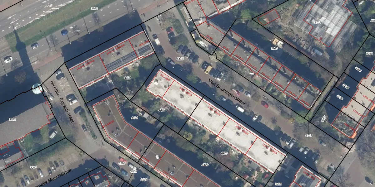Van Beuningenstraat 5-01L is gelegen op kadastraal perceel RTD10Z4425. Deze kadastrale aanduiding is uniek en wordt gebruikt door het Kadaster om eigendomsrechten en andere zakelijke rechten vast te leggen. Het perceel maakt onderdeel uit van de kadastrale gemeente Rotterdam.