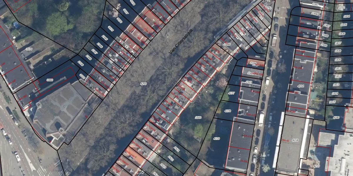 Van Cittersstraat 42-A is gelegen op kadastraal perceel DHV00I1543. Deze kadastrale aanduiding is uniek en wordt gebruikt door het Kadaster om eigendomsrechten en andere zakelijke rechten vast te leggen. Het perceel maakt onderdeel uit van de kadastrale gemeente Delfshaven.