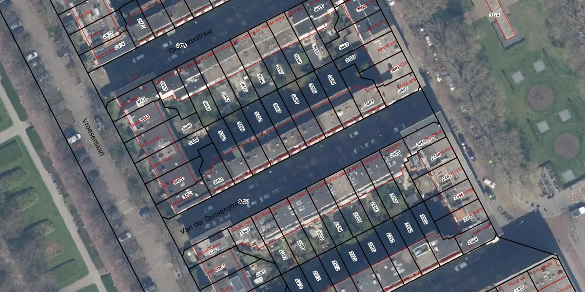Het perceel waarop Van der Dussenstraat 11-A-01 staat heeft een oppervlakte van 157 m². Dit is een middelgroot perceel. De perceeloppervlakte wordt geregistreerd door het Kadaster. Gedetailleerde informatie over de maten van dit perceel kunt u vinden in het rapport Kadastrale kaart met maatvoering van Van der Dussenstraat 11-A-01.