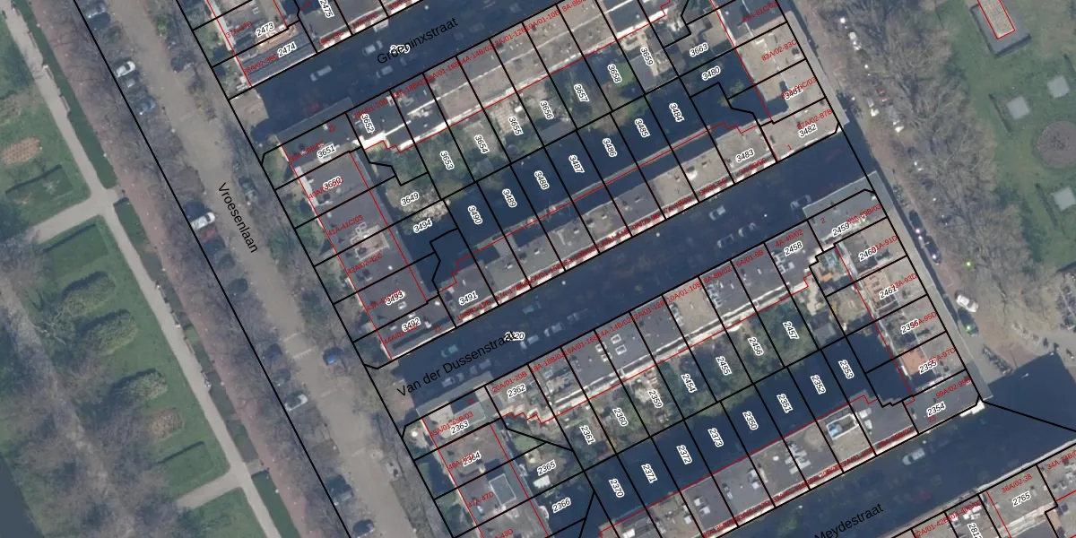 Van der Dussenstraat 15-A-01 is gelegen op kadastraal perceel RTD10Z3489. Deze kadastrale aanduiding is uniek en wordt gebruikt door het Kadaster om eigendomsrechten en andere zakelijke rechten vast te leggen. Het perceel maakt onderdeel uit van de kadastrale gemeente Rotterdam.