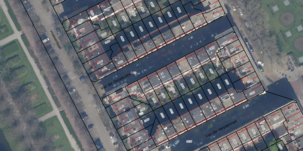 Het perceel waarop Van der Dussenstraat 16-A-01 staat heeft een oppervlakte van 157 m². Dit is een middelgroot perceel. De perceeloppervlakte wordt geregistreerd door het Kadaster. Gedetailleerde informatie over de maten van dit perceel kunt u vinden in het rapport Kadastrale kaart met maatvoering van Van der Dussenstraat 16-A-01.