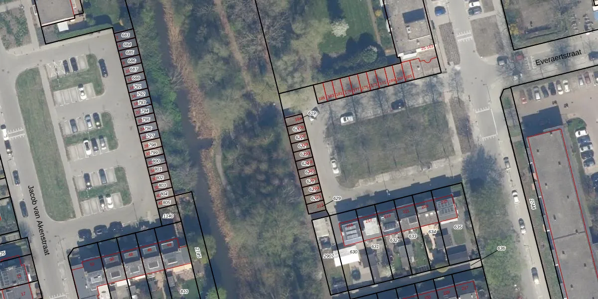 Gebruik de zoekbalk of klik op een perceel voor informatie over de adressen binnen dit perceel.